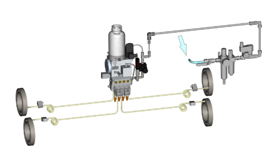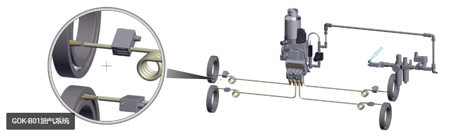 除其他外,“油氣系統”用于少量間歇性潤滑劑供應不足且需要持續向潤滑點供應微量潤滑劑的情況。例如,高速軸承就是這種情況。處理過的空氣用作傳輸介質。