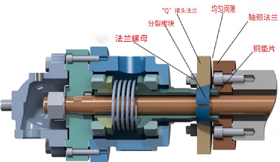 “安裝旋轉壓力接頭需要多少扭矩?” 是測量“Q”接頭法蘭和軸頸法蘭之間的間距。應擰緊法蘭螺母,直到法蘭之間有 1/8” 至 3/16” 的間隙(3 至 5 mm)。間隙在法蘭的整個圓周上應該是均勻的。適當的間距可確保對開楔塊和銅墊圈正確加載,以將接頭密封到軸頸,均勻的間隙可確保旋轉接頭正確對齊。