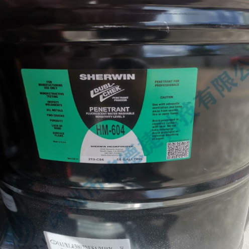 SHERWIN舍溫HM-604滲透液設計用于關鍵焊縫的毛細管檢查,包括渦輪發動機部件、渦輪葉片、鑄件、鍛件和擠壓件。宣偉滲透劑具有優異的滲透性能,可以很好地用水洗掉,有輕微的氣味,可在 5 至 +50 ?С 的溫度范圍內使用。宣威HM-604滲透劑涂在經宣威DR-60 或 N-120清潔劑處理后的測試對象表面。滲透劑HM-604是一種中等粘度的綠色液體。在紫外線照射下,滲透劑會發出明亮的黃綠色光芒。開發商宣威D-100 或 D-106只能用于提高質控結果的可讀性。滲透劑HM-604廣泛應用于汽車和航空工業,控制材料表面的焊縫、鑄件、鍛件和擠壓件。滲透劑 HM-604 符合以下行業標準:ALLISON、EADS、SAFRAN、BOEING、LOCKHEED 等。滲透劑以 300 毫升氣霧劑罐、1、5、10 和 25 升罐提供。保質期5年。