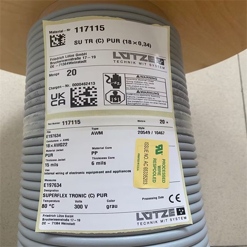 深圳歐德捷科技有限公司專業銷售LUETZE線纜117115(20M)SUTR(C)PUR(18X0,34) 全新原裝正品進口,